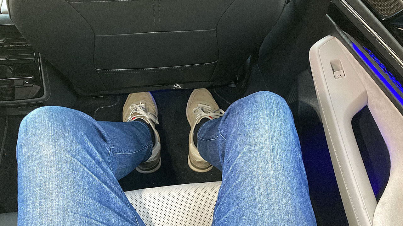 På bagsædet er pladsen nærmest fyrstelig. Hvis bagsædepassagerne har store fødder og/eller solide sko på, må personen i sædet foran dog ikke køre sit sæde i bund, for så kniber det med at masse skoene ind under.