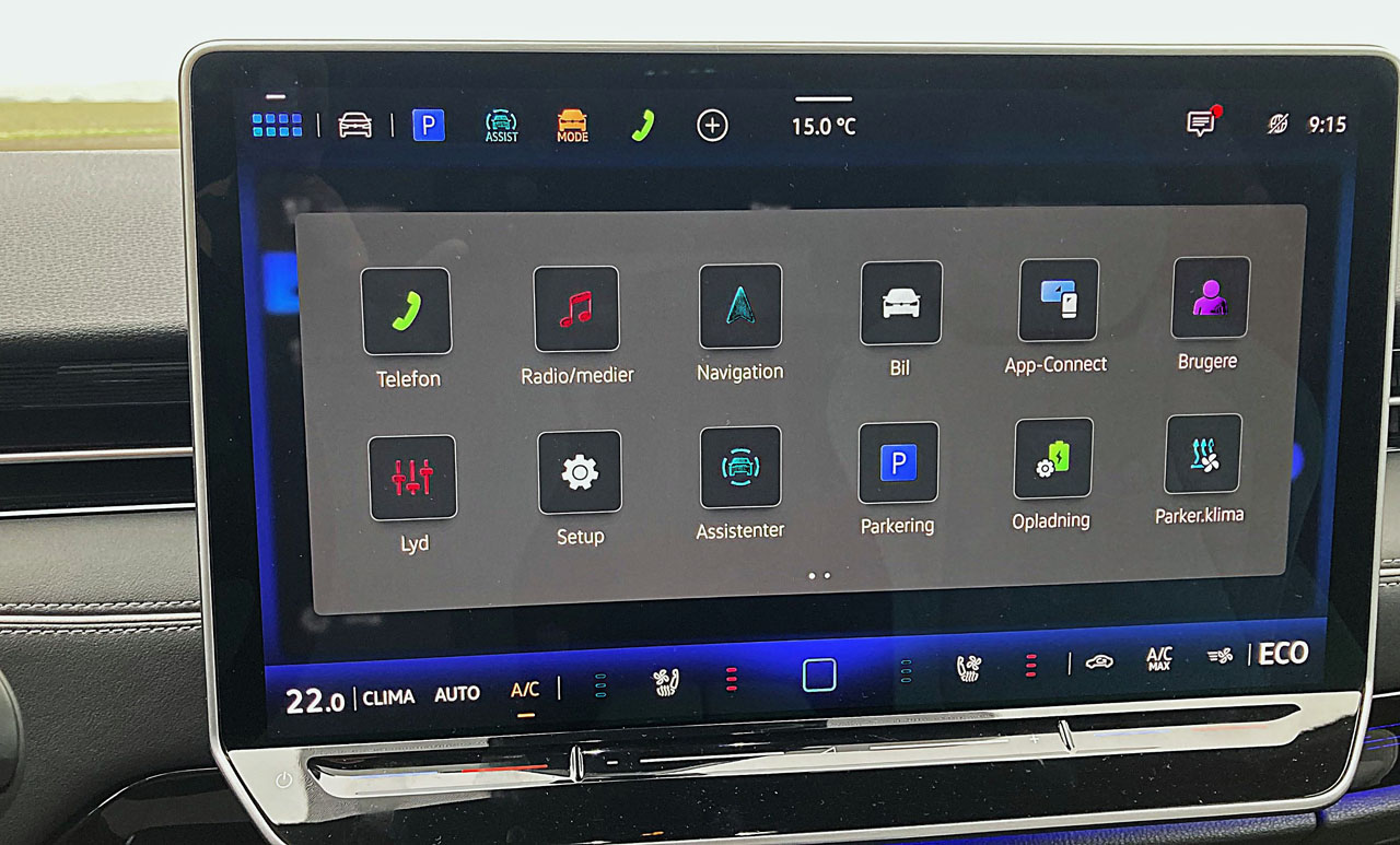 Et monster af en 15 tommer stor, hurtigt reagerende og tydelig infotainmentskærm dominerer kabinen, og efter et par år eller tre har VW nu efterkommet kundernes ønsker, så man også i mørke kan se den blå og den røde skyder nederst på skærmen til justering af klimaanlæggets temperatur. Det er faktisk ret brugervenligt.