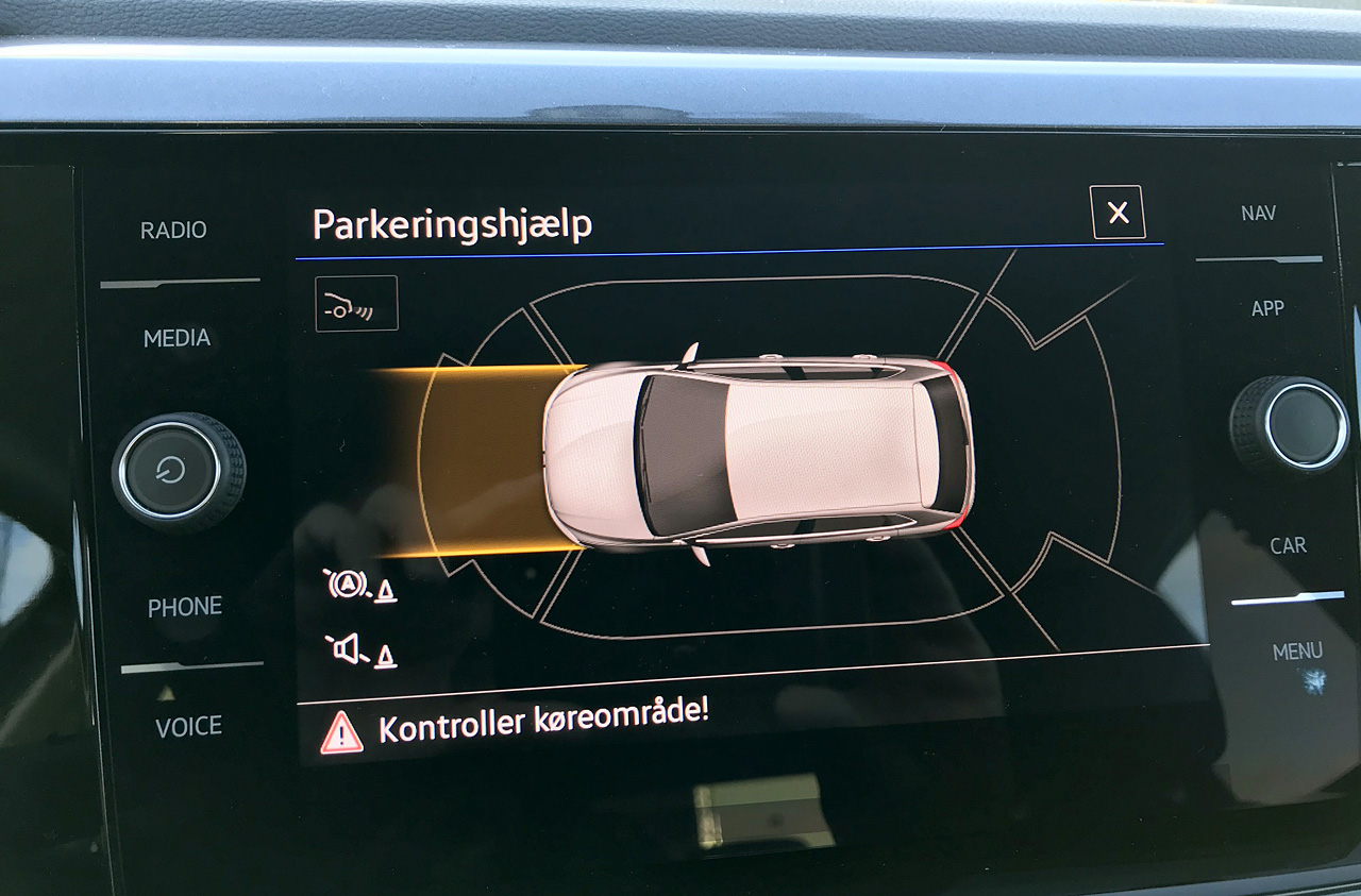 Betjening af elbagrude, sædevarme og indstilling af temperatur foregår fra et lille panel under den store touchskærm. Tilkøber man DK-pakken inklusive klimaanlæg, skal man med fingerspidsen berøre enten et blåt eller et rødt punkt for at skrue ned eller op for temperaturen. Uanset hvor gerne VW end vil, fungerer det altså ikke på samme optimale måde som en gammeldags tryk- eller drejeknap.