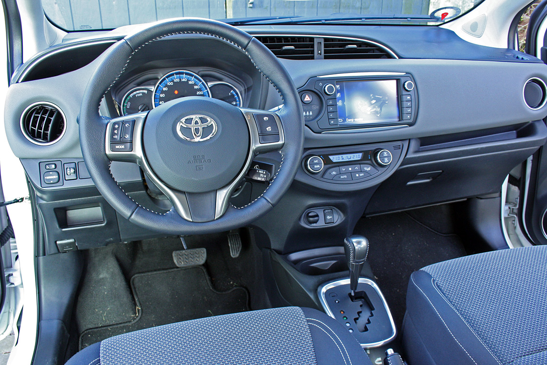 Sæderne er gode, dog lidt smalle bagtil, og støtter godt. Generelt er førerpladsen overskuelig og logisk betjent med mange fine fralægningsmuligheder. Man savner dog støtten fra et armlæn mellem forsæderne, der ellers passer godt til den afslappede kørestil, som Yaris Hybrid lægger op til.