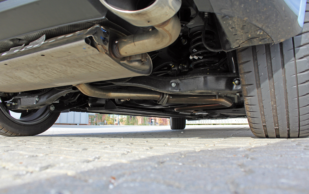 På alt andet end moderne støjdæmpende asfalt er du konsekvent akkompagneret af en højlydt rumlen fra dækkene. Her betaler du prisen for den forbedrede køredynamik.