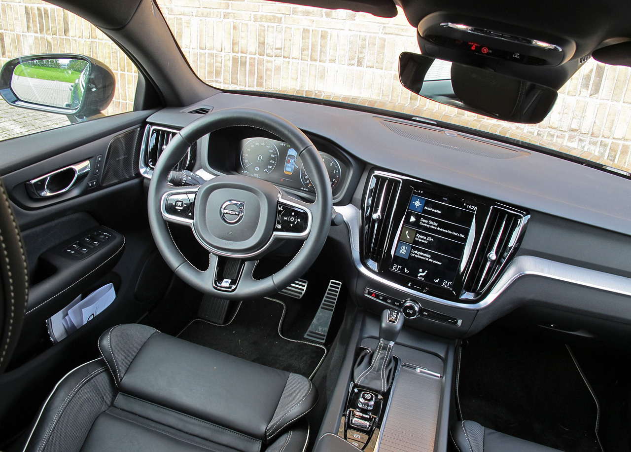 Få kan som Volvo skabe ergonomisk vellykkede førerpladser, hvor forholdet mellem sæde, rat og pedaler er skræddersyet til både stor og lille. Komfortable forsæder er en anden klassisk Volvo-dyd, som S60 nyder godt af – her kan du sidde i timevis uden at blive træt. Dog blev vi ikke helt gode venner med testbilens førersæde med mulighed for ekstra støtte under lårene via en lille flytbar pude. Når den er fremskudt, havde vi for lidt sæde at sidde på med bagen. Det skal noteres, at denne testkørers bagdel ikke hører til blandt de mindste. Omdrejningspunktet i alle Volvoer er en lodret iPad-stor trykfølsom skærm midt på instrumentbordet øverst. Det ser godt ud, men betjeningen er ikke specielt intuitiv, og det stjæler chaufførens opmærksom.