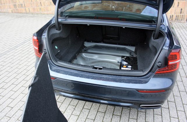 Den foregående S60 var lidt af en ’knæ-knuser’ for passagererne på bagsædet. Det gør den nye udgave op med. Her er næsten 2,9 meter mellem akslerne, og pludselig kan Volvo prale af et af klassens rummeligste bagsæder. Dog betyder den smukt faldende taglinje, at garderhøje skandinaver kan få trykket frisuren på bagsædet. Her er selvfølgelig både friskluftdyser, læselamper og opladningsmulighed. Længere bagude har bagagerummet en kapacitet på 442 liter. Ikke overvældende, men absolut godkendt. Det er ikke bagagerummets størrelse, der kan være et problem i hverdagen, men i stedet den snævre åbning, hvor lasten skal lirkes ind. Og så har S60 selvfølgelig ikke helt samme fleksibilitet i anvendelsen som V60. Til gengæld har man glæden af den lukkede kabine, hvor hjulstøj fra bagagerummet ikke kan trænge ind.